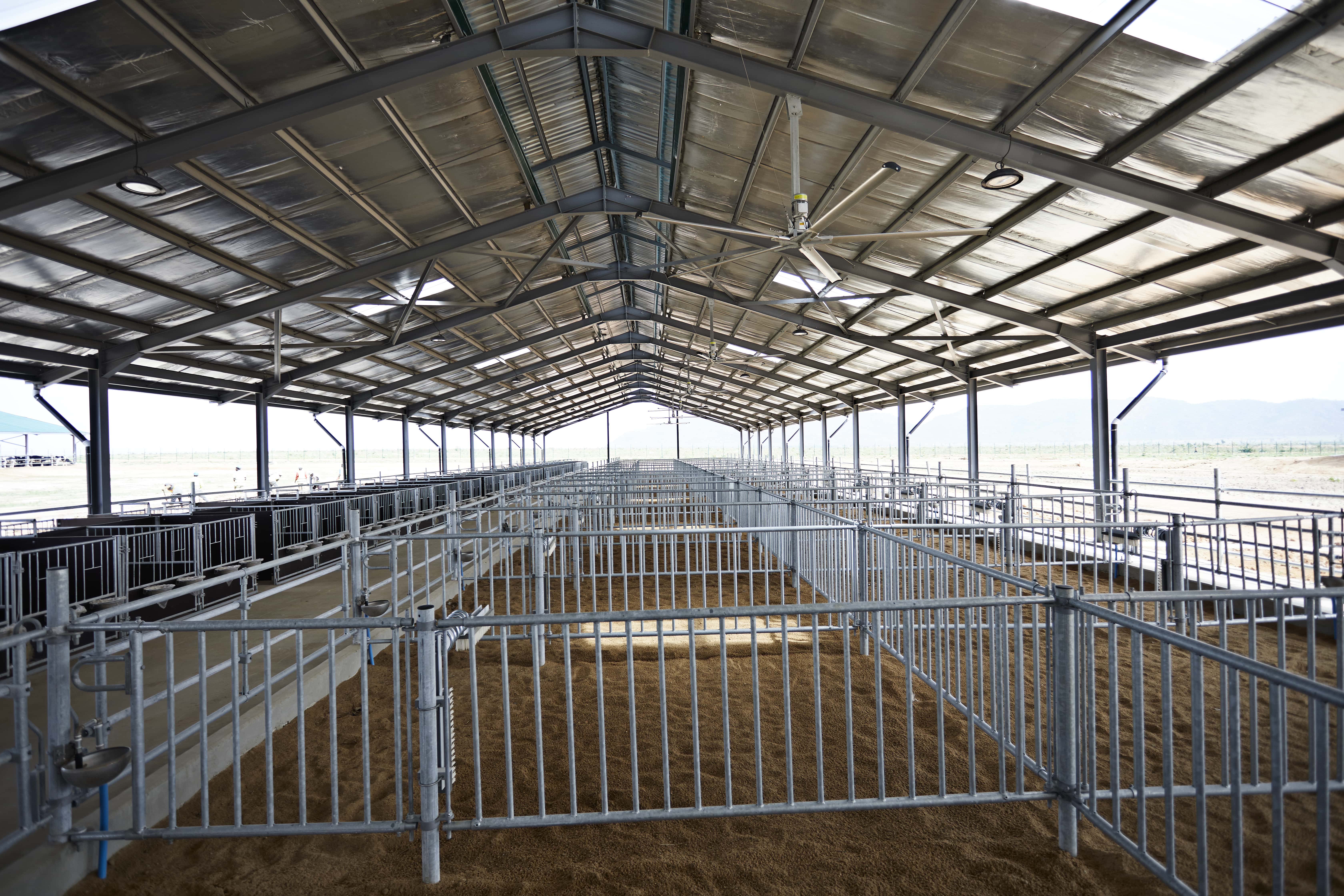 Our design excels with spacious surroundings for each animal. The cows have unrestricted access to tailored cubicles, wide and long for optimal rest. Unlike typical farms, our barn has four rows of cubicles instead of six, prioritizing cow well-being by maximizing space. This allows them to move freely and have ample personal space.