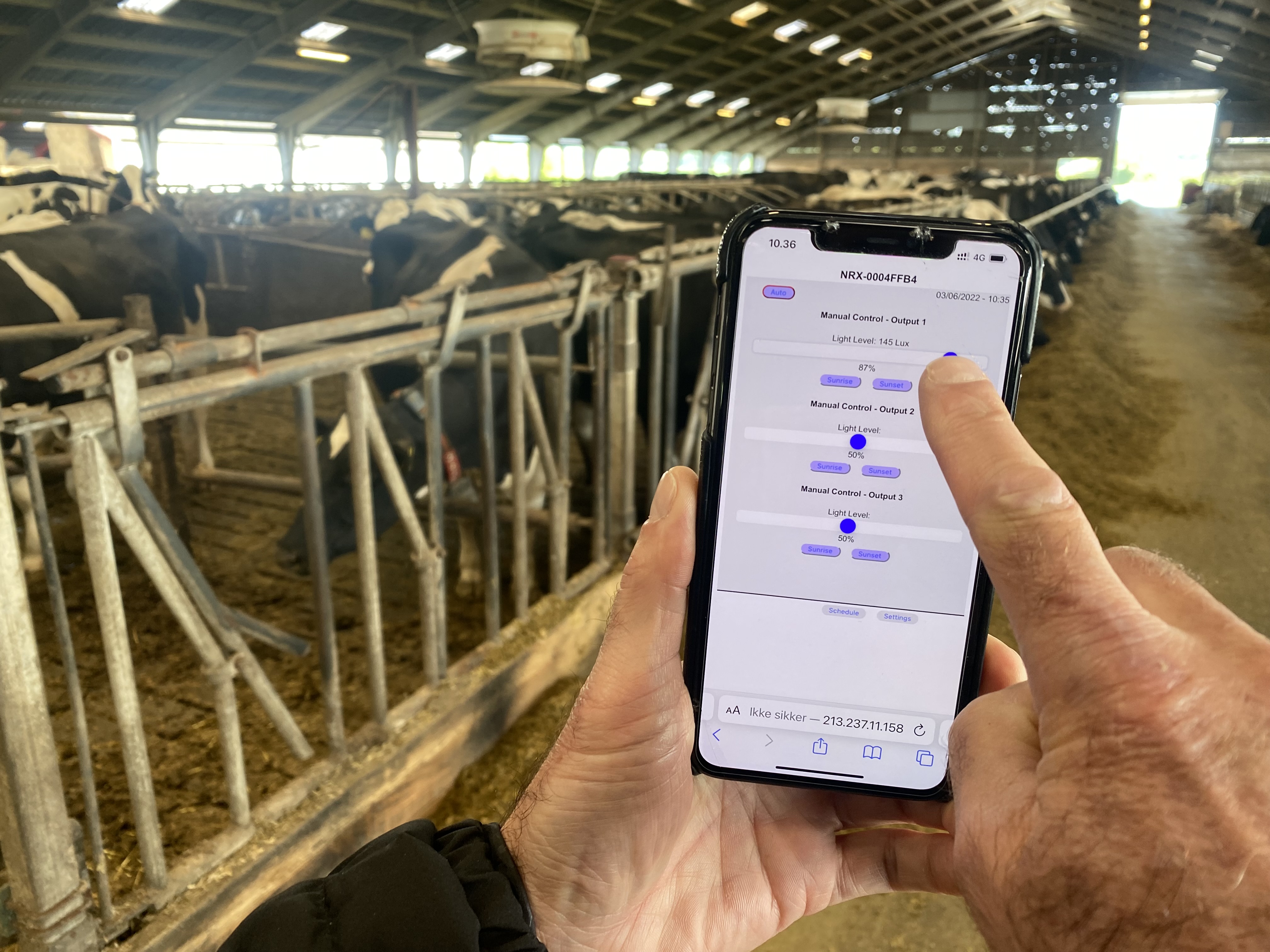 The barn buildings at the Arla farm are equipped with specially designed LED lights that are tailored to serve their purpose. The light settings are carefully adjusted to maximize the benefits for our animals. It is essential to strike a balance between light and darkness to establish a consistent circadian rhythm for optimal cow performance. Darkness stimulates melatonin production in the brain, while light inhibits it. Maintaining a disrupted circadian rhythm, caused by insufficient daylight or short light periods during the day, as well as excessive light exposure at night, can have detrimental effects on the fertility, longevity, and overall health of cows. To ensure the optimization of these conditions, we have implemented a computer controlled lighting system in the barns at the Arla farm. This system is independent of the sun's rising and setting times throughout the year or unexpected events like heavy rain resulting in darkness during the daytime. It continuously detects the available light conditions and adjusts the intensity of the lights accordingly, 24/7. All these measures are taken to enhance the performance and welfare of our cows.